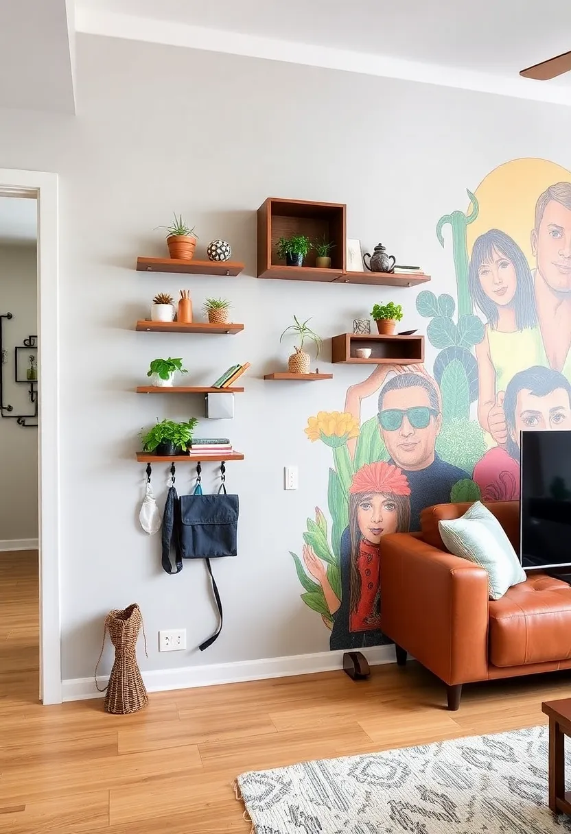 Look for wall art that doubles as storage, such as shelves shaped like trees or art pieces with built-in hooks.