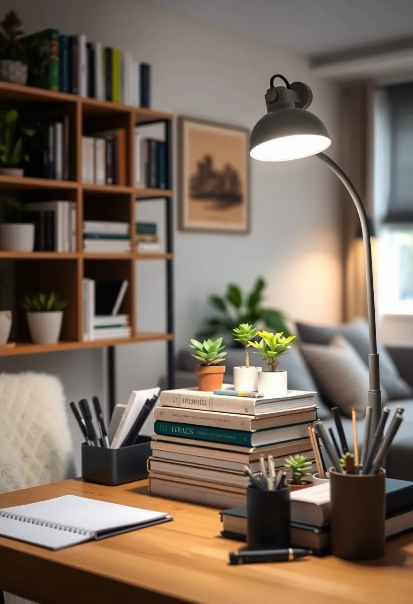 Add decorative elements like a small plant or framed photos to personalize your workspace.