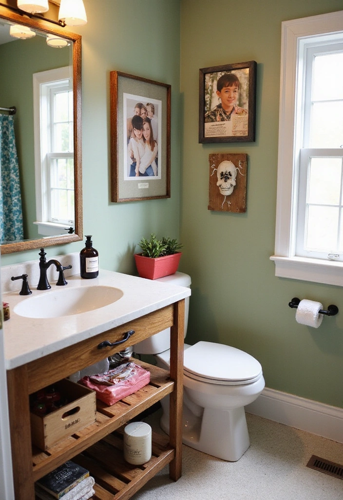Incorporate artwork, custom storage solutions, or family photos to add a unique touch.