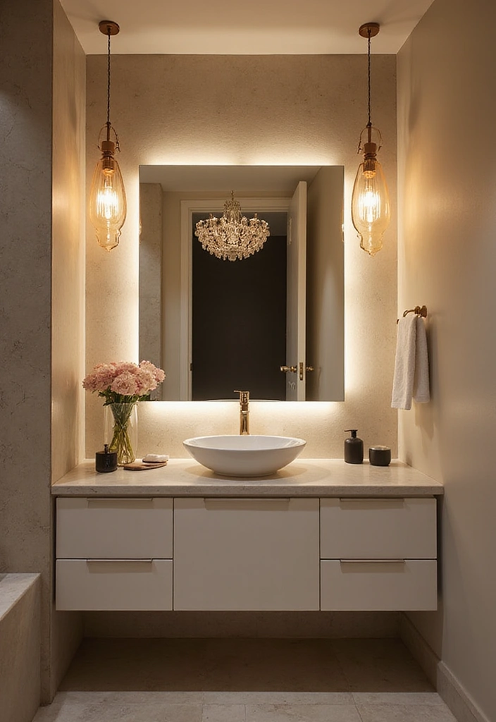 – Position lights to enhance the overall design, like above mirrors or near tubs.