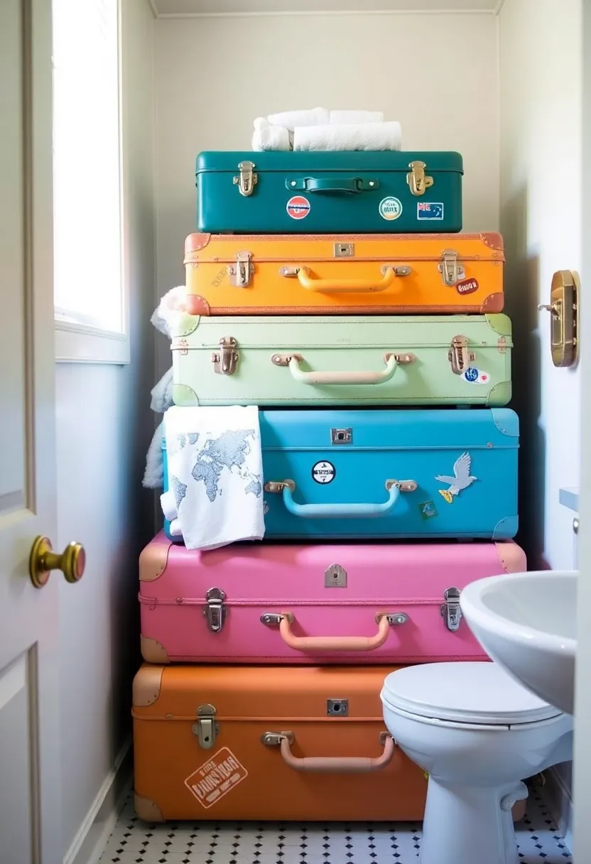 Add a touch of nostalgia and unique flair to your bathroom with vintage suitcases as storage solutions.