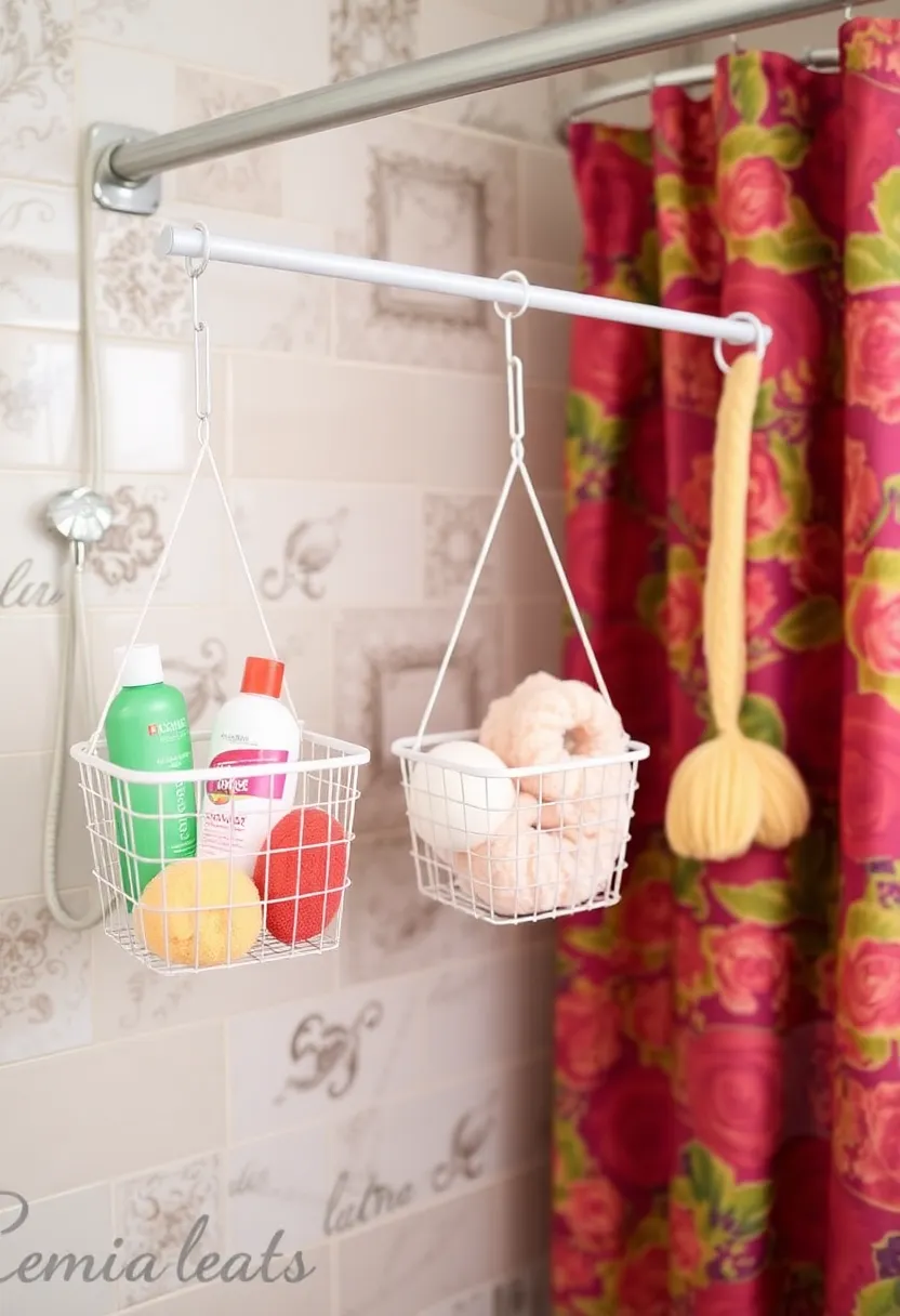 Use tension rods in your shower area to hang storage baskets or caddies for easy access to your shower essentials.