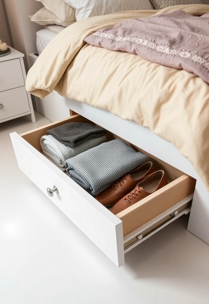 Under-bed storage drawers come in various designs and materials, making them a versatile choice for any style. Use them to stow away seasonal clothing, extra bedding, or even shoes, keeping your bedroom looking tidy and organized.