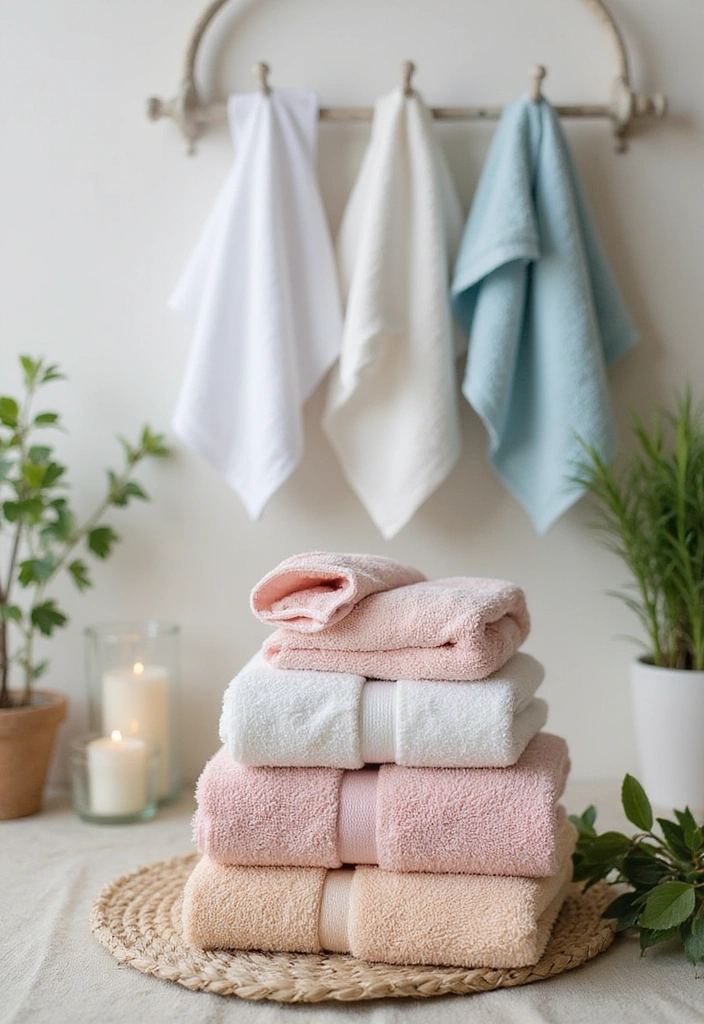 Choose plush, absorbent towels in soothing colors that can elevate the bathroom experience.