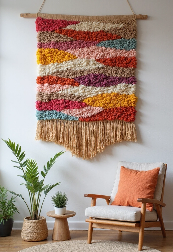 Create a stunning woven wall hanging that adds both texture and warmth to your home decor. With a simple weaving loom or even a DIY cardboard frame, you can weave colorful yarn and fabric strips into a captivating tapestry.