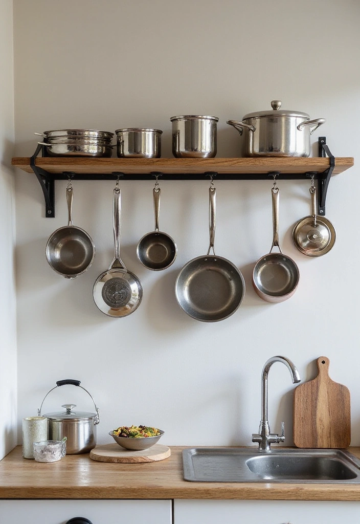 A wall-mounted pot rack is an excellent way to save space while displaying your cookware.