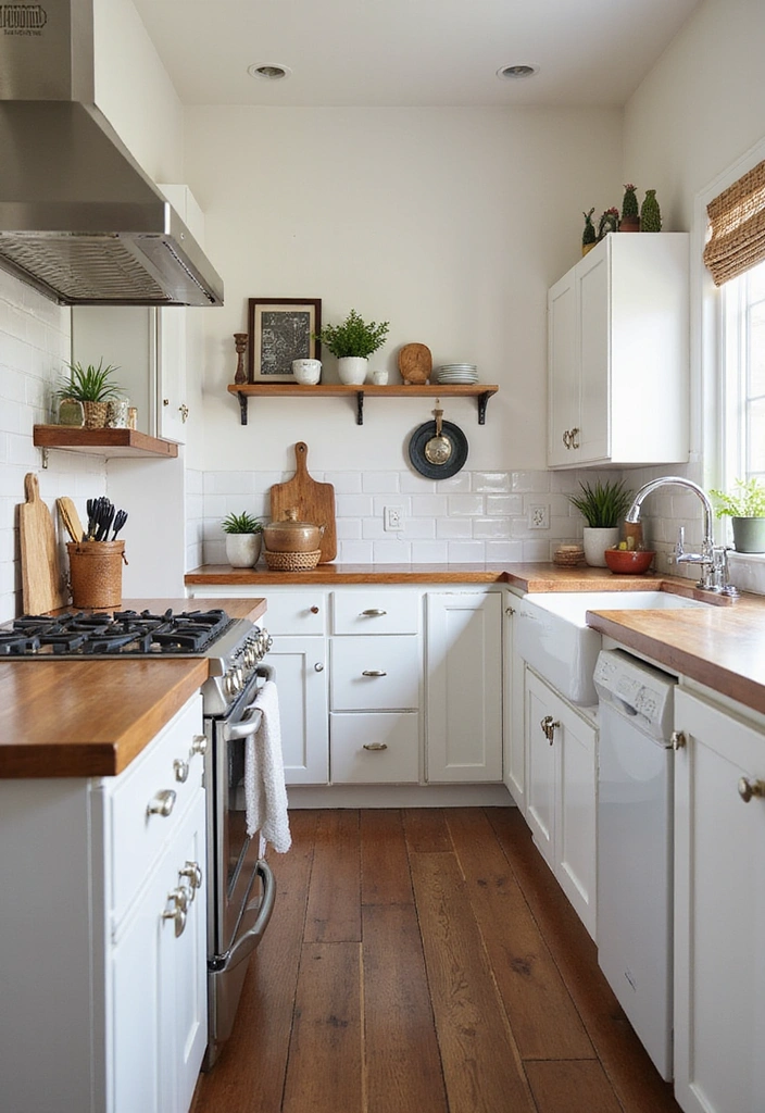 Hanging pots can also serve as a decorative element, infusing character into your small kitchen.