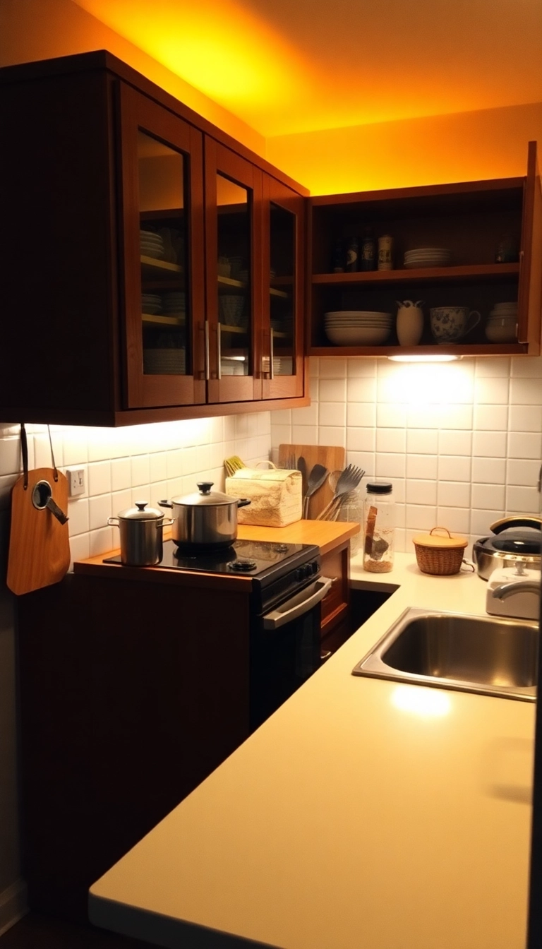 Not a traditional storage solution, but under-cabinet lighting can enhance the functionality of your small kitchen.