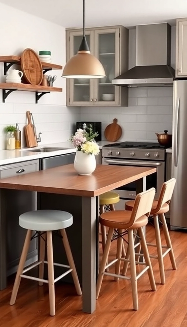 In a small kitchen, furniture that serves multiple purposes is a must.