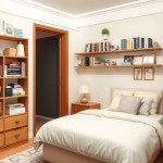 Maximize your space with floating shelves that provide both storage and style.