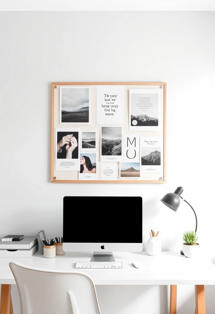 Incorporate a minimalist vision board into your office to inspire creativity and set goals.