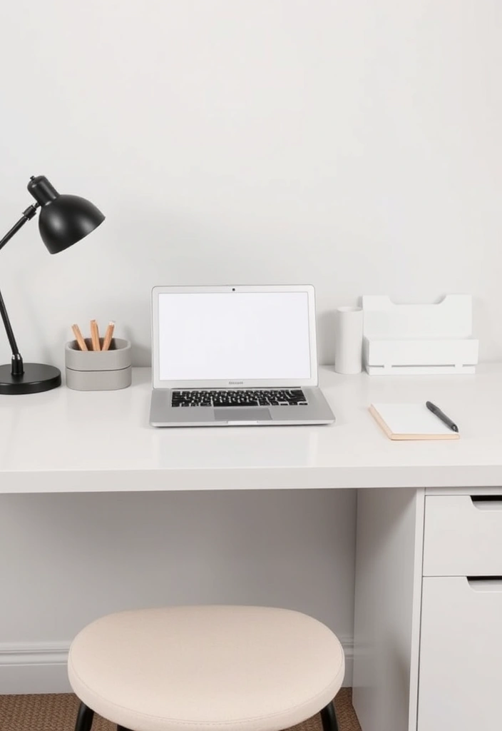 Opt for a white desk with clean lines and minimal accessories. A few well-placed items, like a plant or a stylish pen holder, can add a touch of personality without overwhelming the senses.