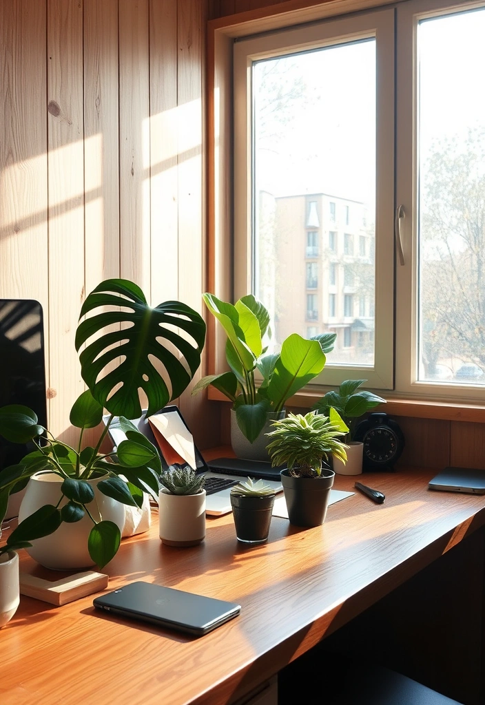 Adding plants or natural wood furniture can bring life to your workspace while maintaining a clean aesthetic. Plants not only improve air quality but also promote a sense of calm and creativity.