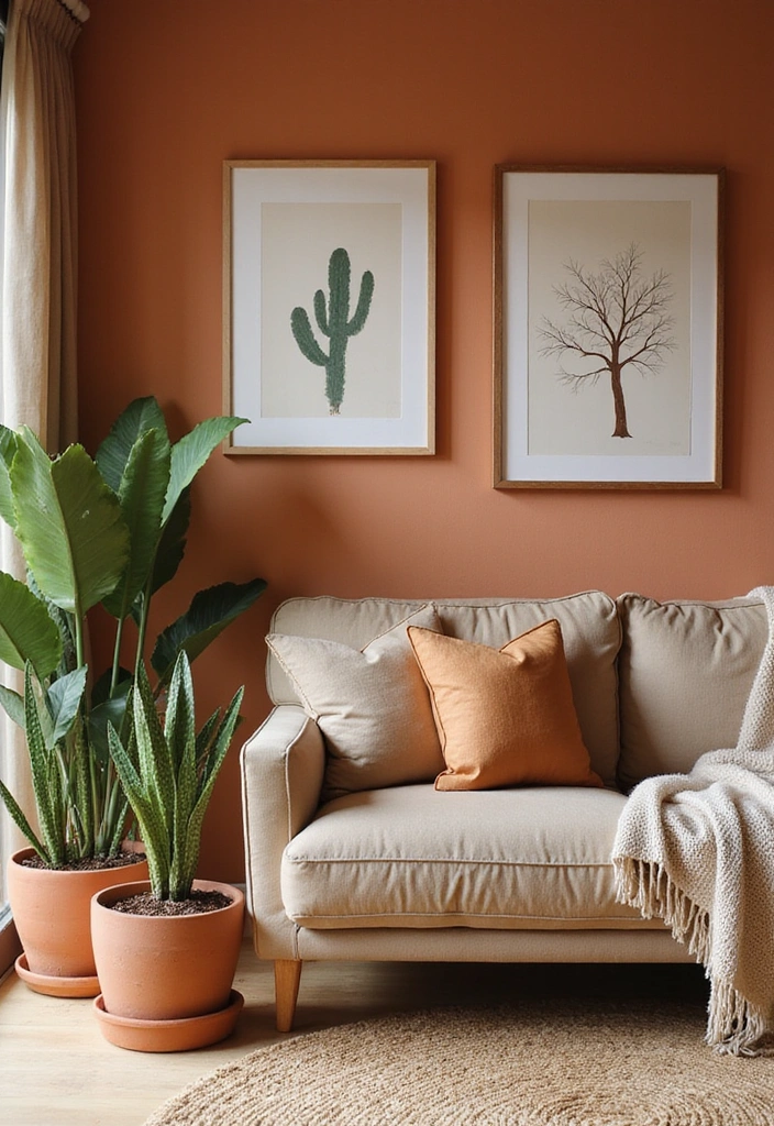Colors like terracotta, muted greens, and soft browns bring a touch of nature indoors. These hues can evoke feelings of calm and serenity.