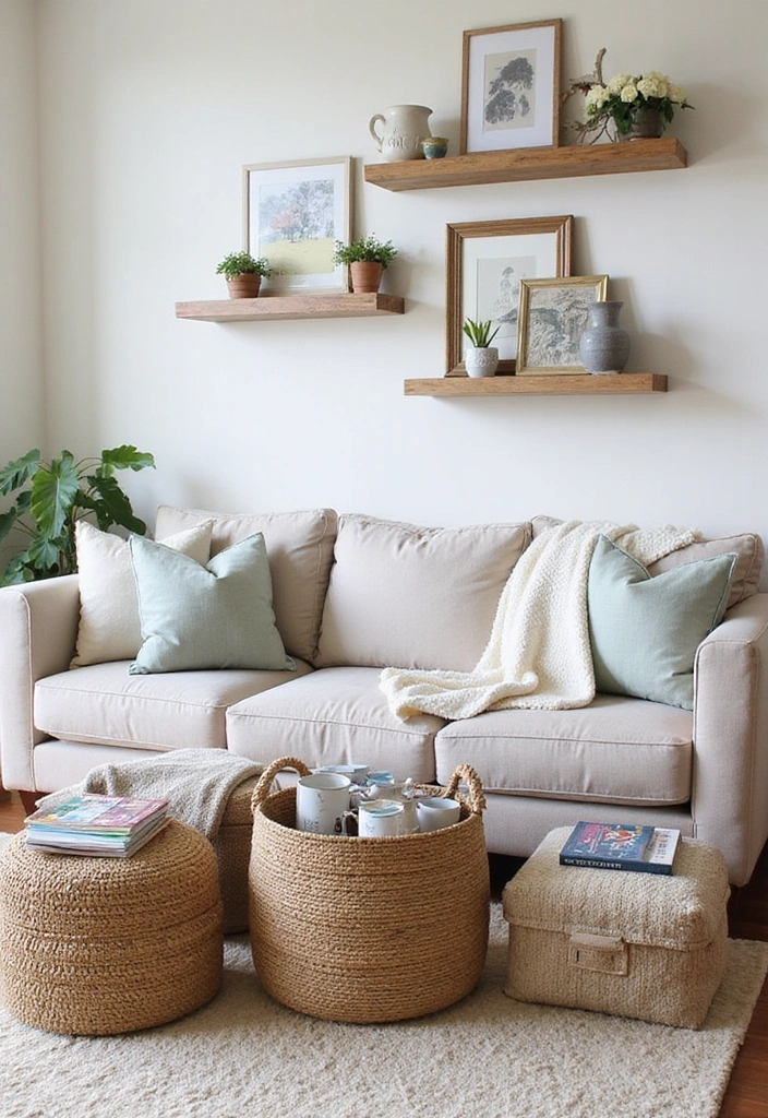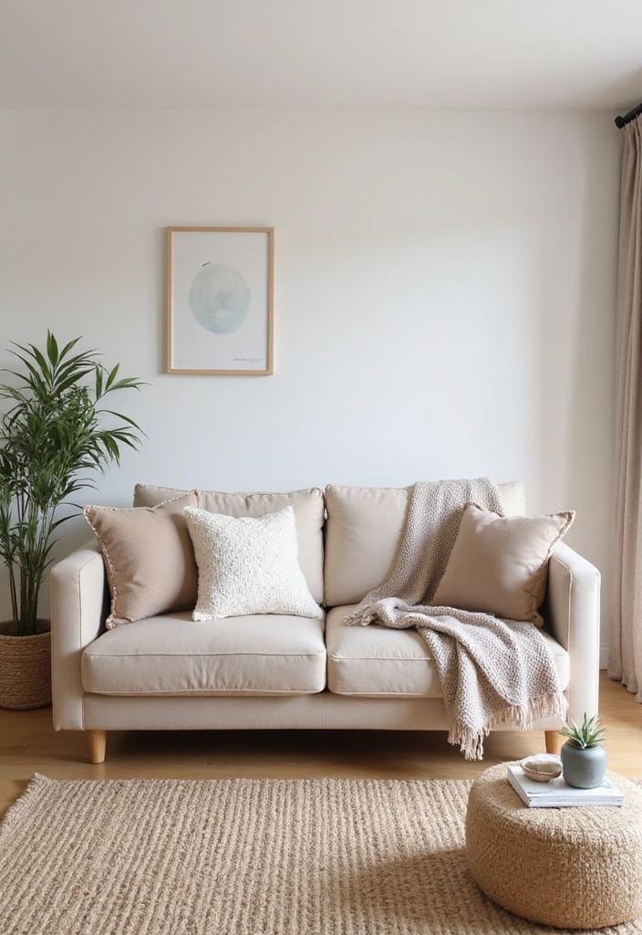 With a thoughtful palette of soft whites, greys, and earthy tones, transforming your living area into a calming retreat is easier than you think.