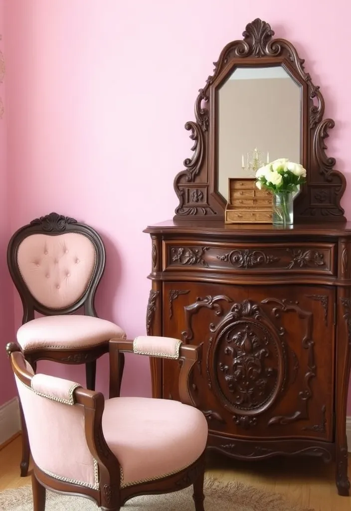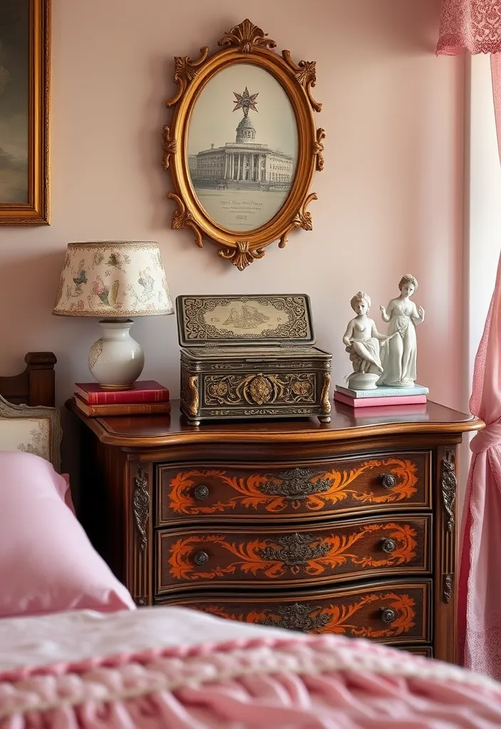 Position a large mirror above a dresser or a small decorative one on your nightstand for added charm. This combination of functionality and style is essential for a vintage pink princess bedroom.