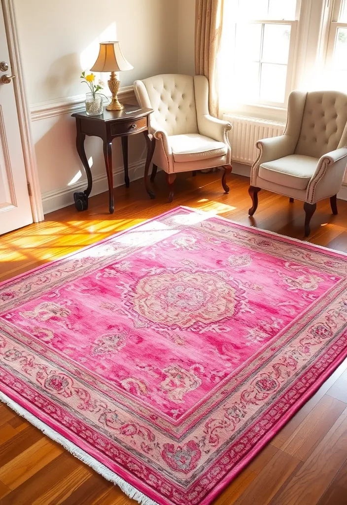 Add warmth and elegance to your small bedroom with a vintage pink rug.