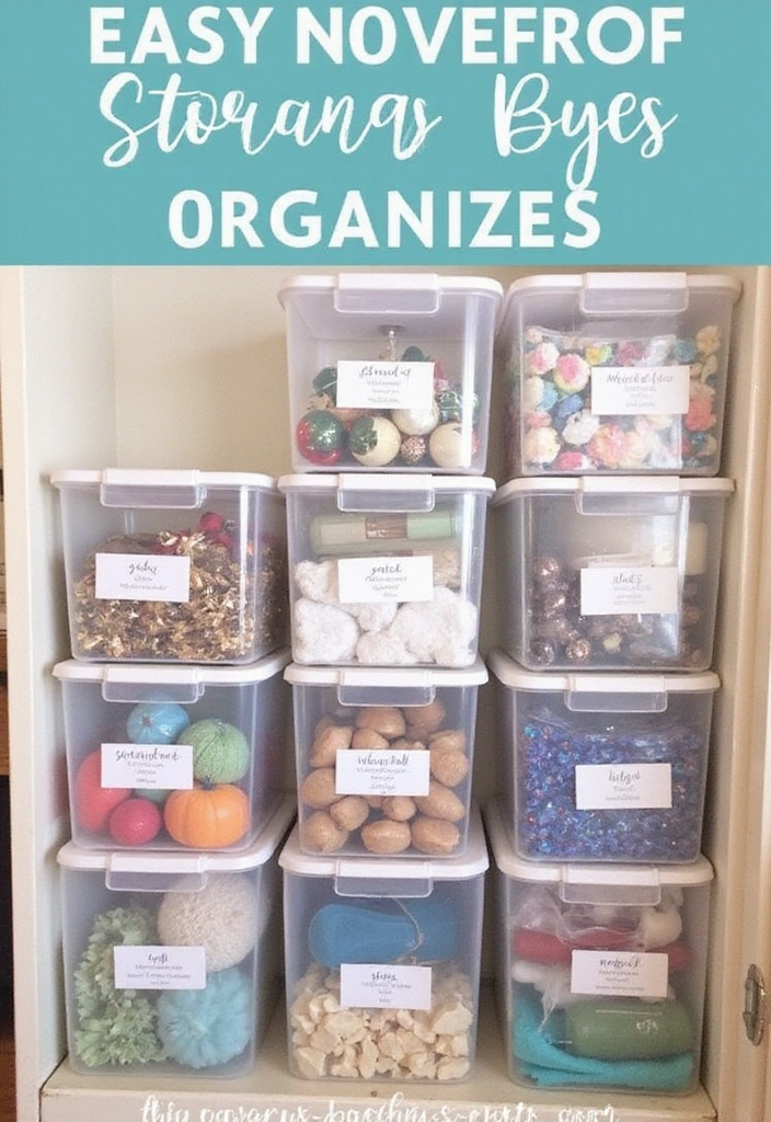 • clear storage bins with labels