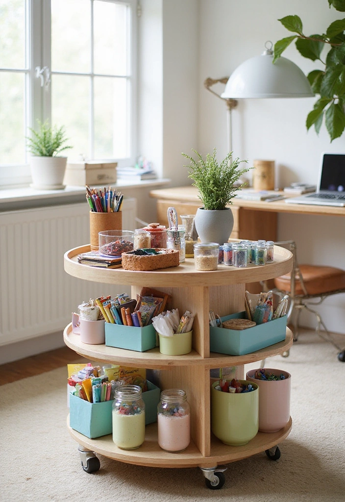 Rotating storage carts are a fun and functional way to keep your items organized.