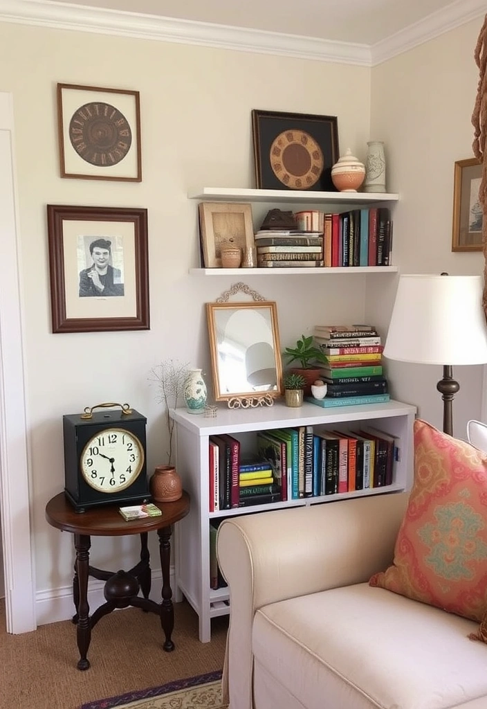 Consider adding a unique decor item that stands out or a vintage clock that adds a touch of nostalgia.