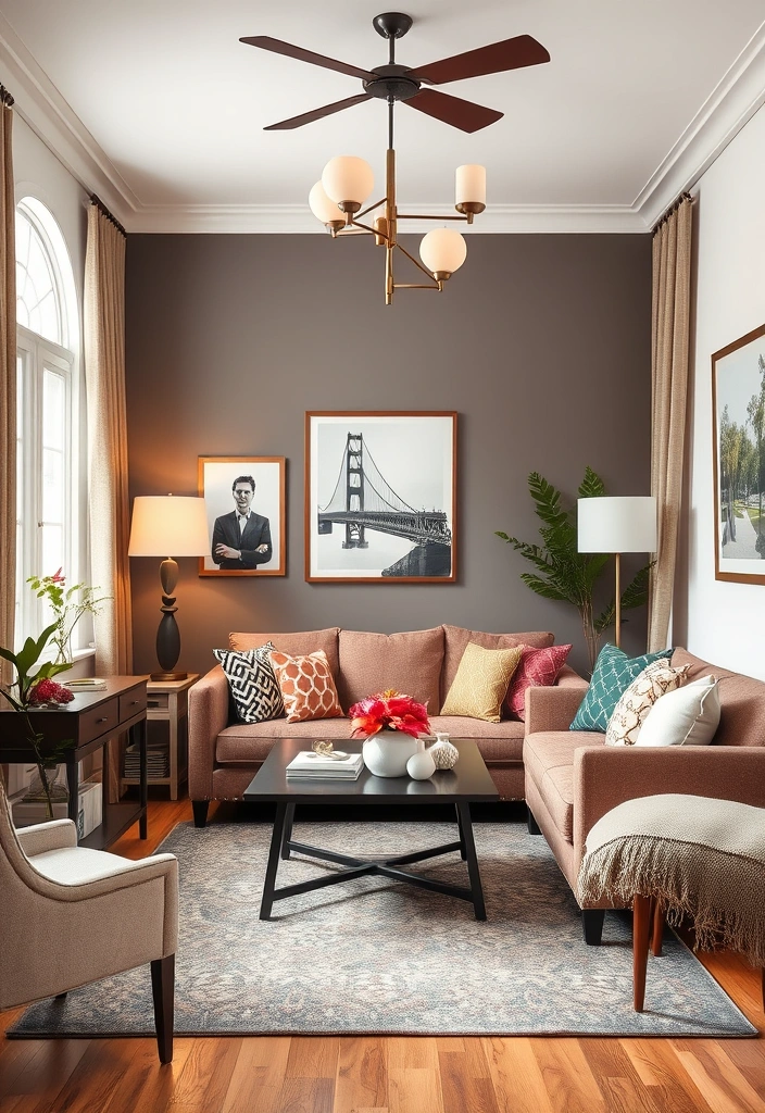 In a compact living room, opting for lighter hues can help create an illusion of spaciousness, while introducing vibrant patterns through accessories can add character and charm.