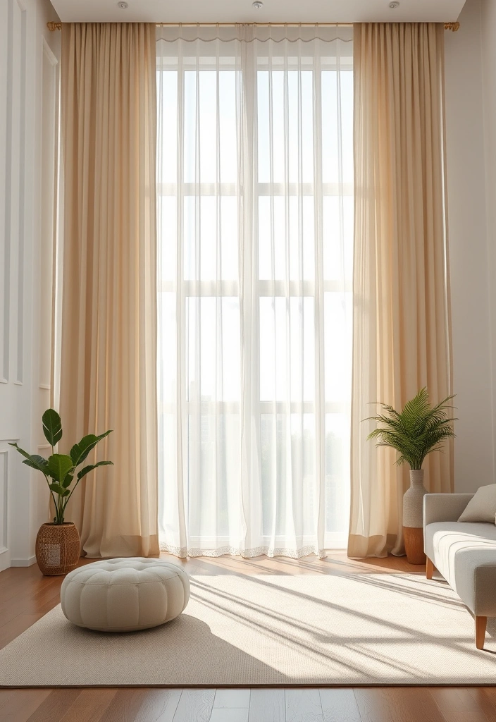 Opt for floor-to-ceiling curtains in light colors to create an illusion of height and openness.