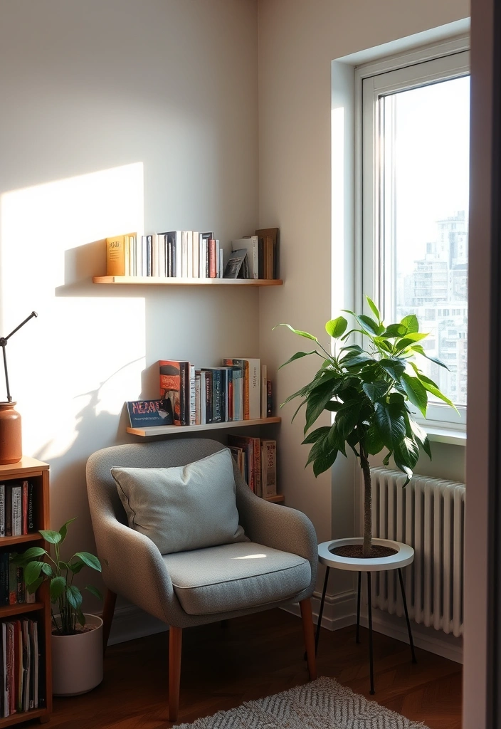 Consider adding a narrow bookshelf in a hallway, a small table in a corner, or a bench by the window.