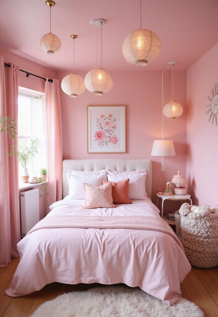 Consider painting the ceiling in a lighter shade of pink or adding decorative elements like hanging paper lanterns.