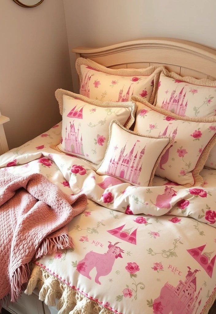 Select bedding adorned with charming motifs, such as castles, unicorns, or floral patterns, to create a whimsical atmosphere.