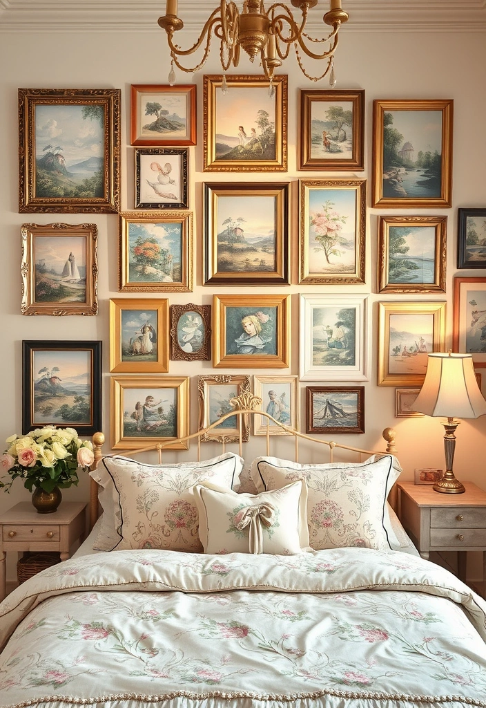 Incorporate vintage artwork into your bedroom decor to enhance the fairy tale atmosphere.